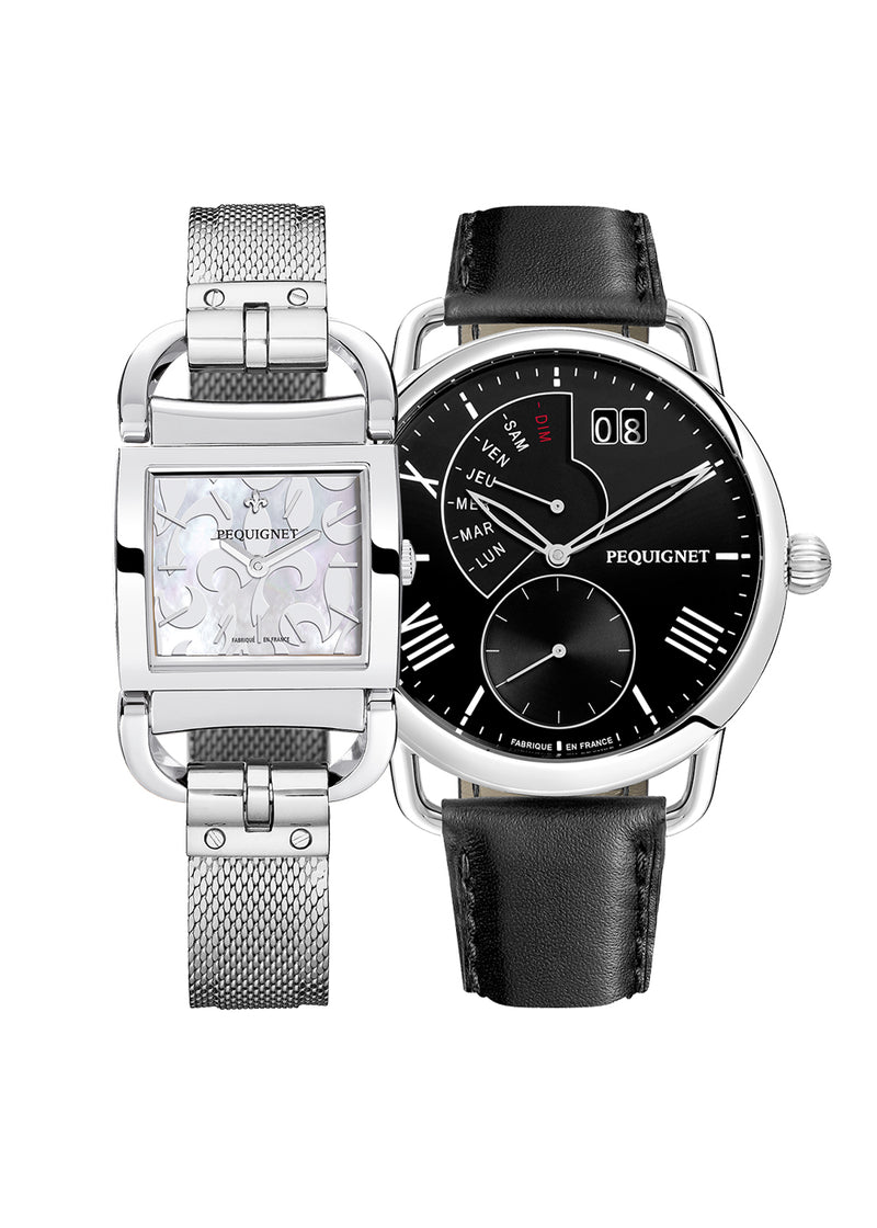 Sobres ou singulières, discrètes ou colorées, classiques ou sportives mais toujours raffinées, les montres Pequignet habillent aussi bien les poignets des hommes que des femmes, pour un style unique.