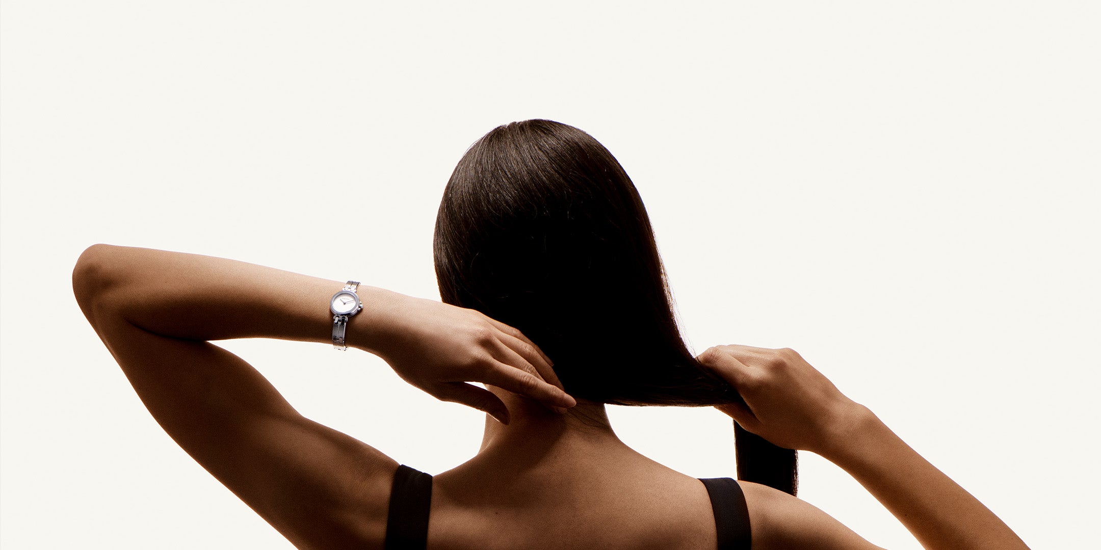 Version élégante et sophistiquée de la collection Moorea, ce modèle de 25 mm de diamètre présente un cadran opalin et une lunette sertie de 55 diamants véritables. Elle possède un bracelet unique en maille pensé par Émile Pequignet. Cette montre et est équipée du mécanisme à quartz Suisse ETA.