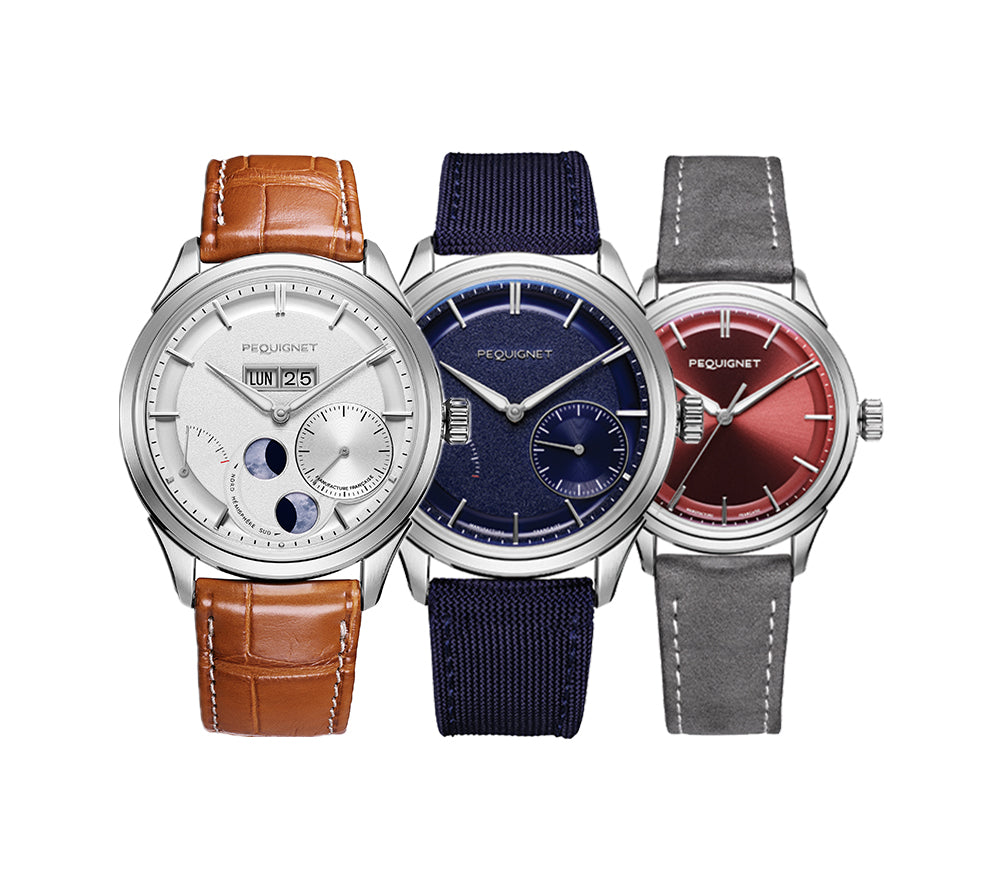 For your peace of mind, Pequignet watches are guaranteed for 3 or 5 years from the date of purchase: 5 years for models equipped with a Pequignet movement (Royale collection, Attitude, Extrême 300, Concorde) and 3 years for other automatic, manual or quartz models.