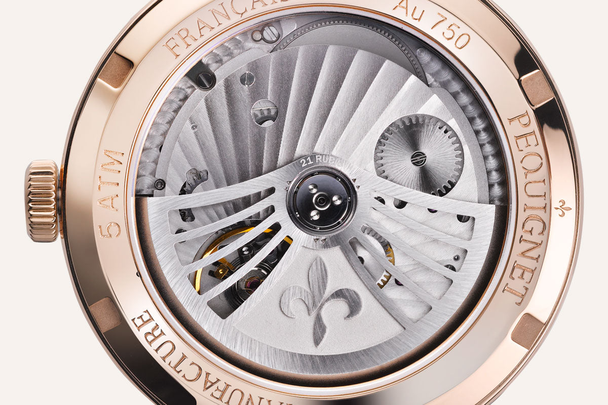 Designed to drive Pequignet's Attitude collection, the Calibre Initial is covered by two international patents, including its semi-instant date jumping system. This new movement consists entirely of components produced within 80 km around Morteau.